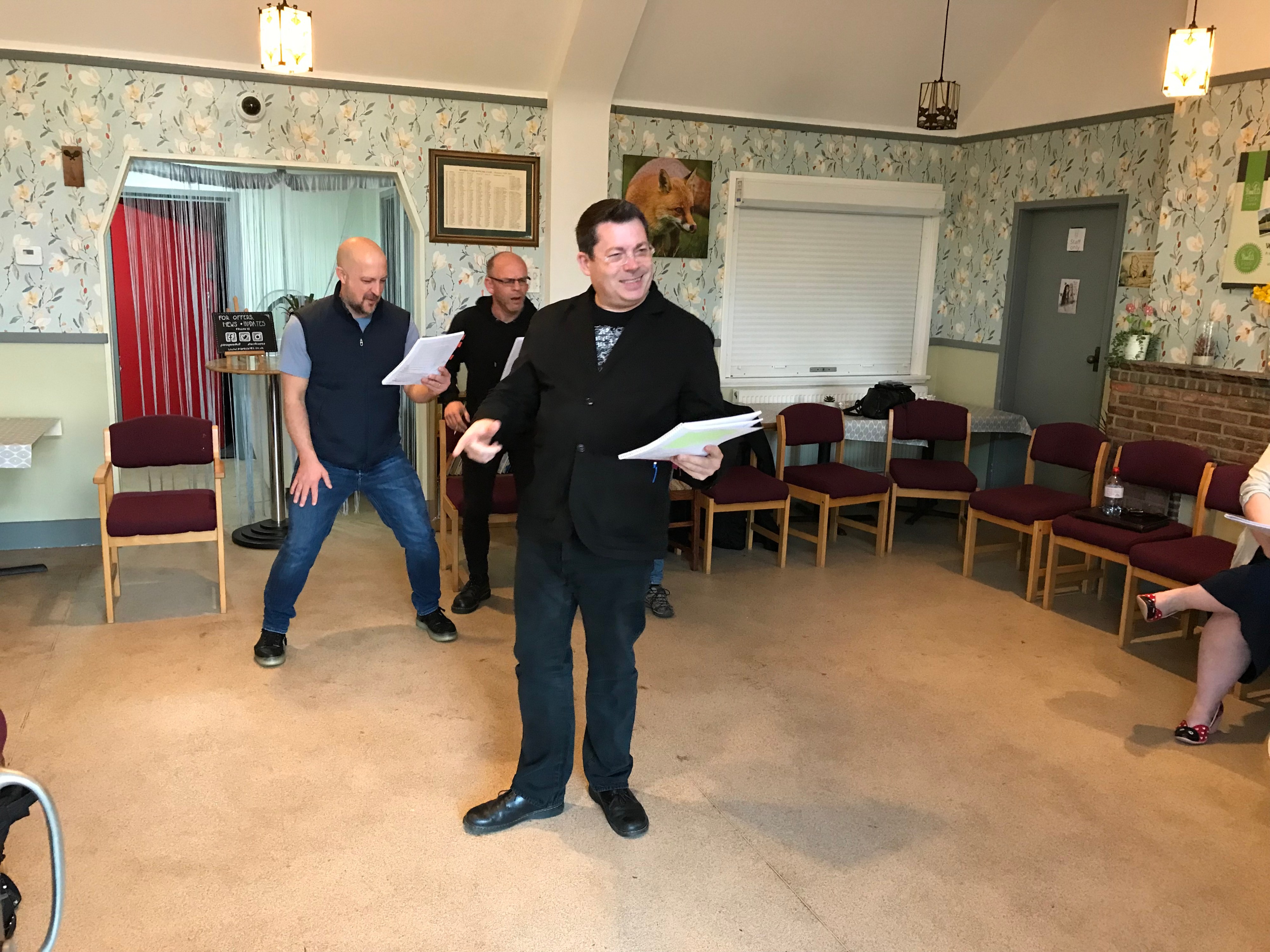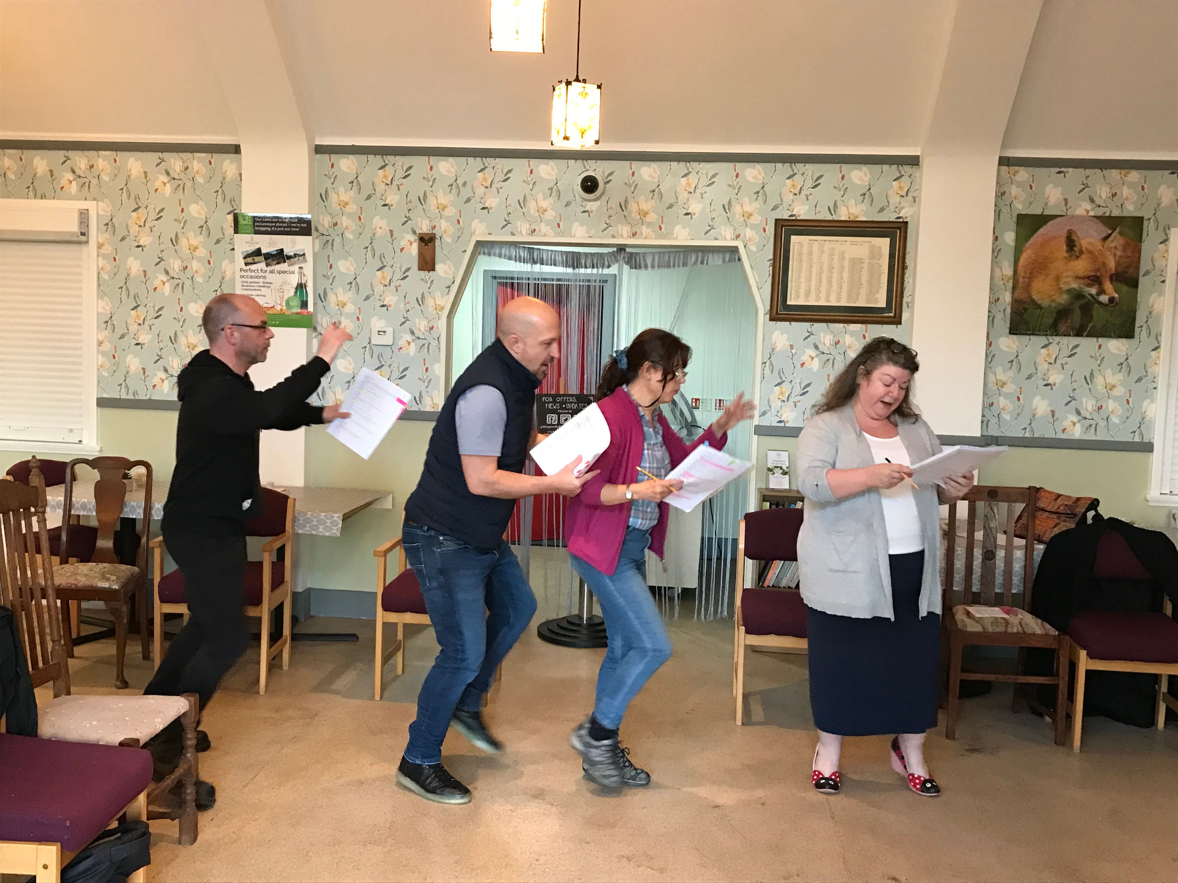 Outdoor rehearsals throw a number of new challenges into the mix: firstly, projection. It’s all very well being able to fill a small room with just your voice, but the open air is a whole different ball game. There are no walls to bounce and resonate the sound off, and vastly more space to fill. On Monday – our first outdoor rehearsal, we had a visit from Marie Bushell, who gave us the pleasure of a great vocal warm-up to begin to get us used to the wider space.